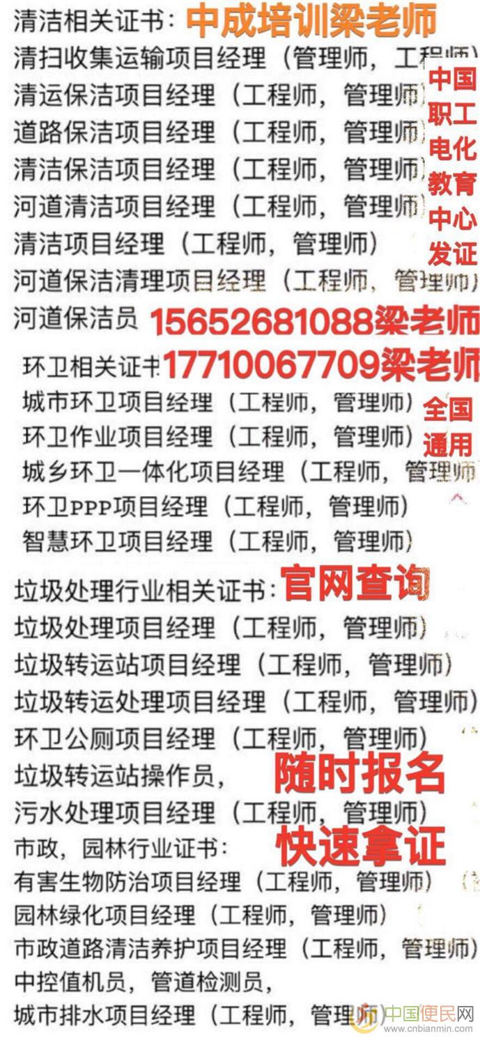 焦作全国通用随时报名的物业岗位证监理工程师八大员清洁保洁管理师垃圾处理转运工程师管理师报名条件哪里考中+国+便+民+网